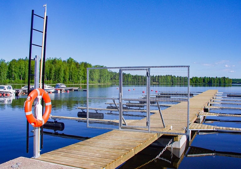 Alla bryggor är försedda med grindar för säkerhet.